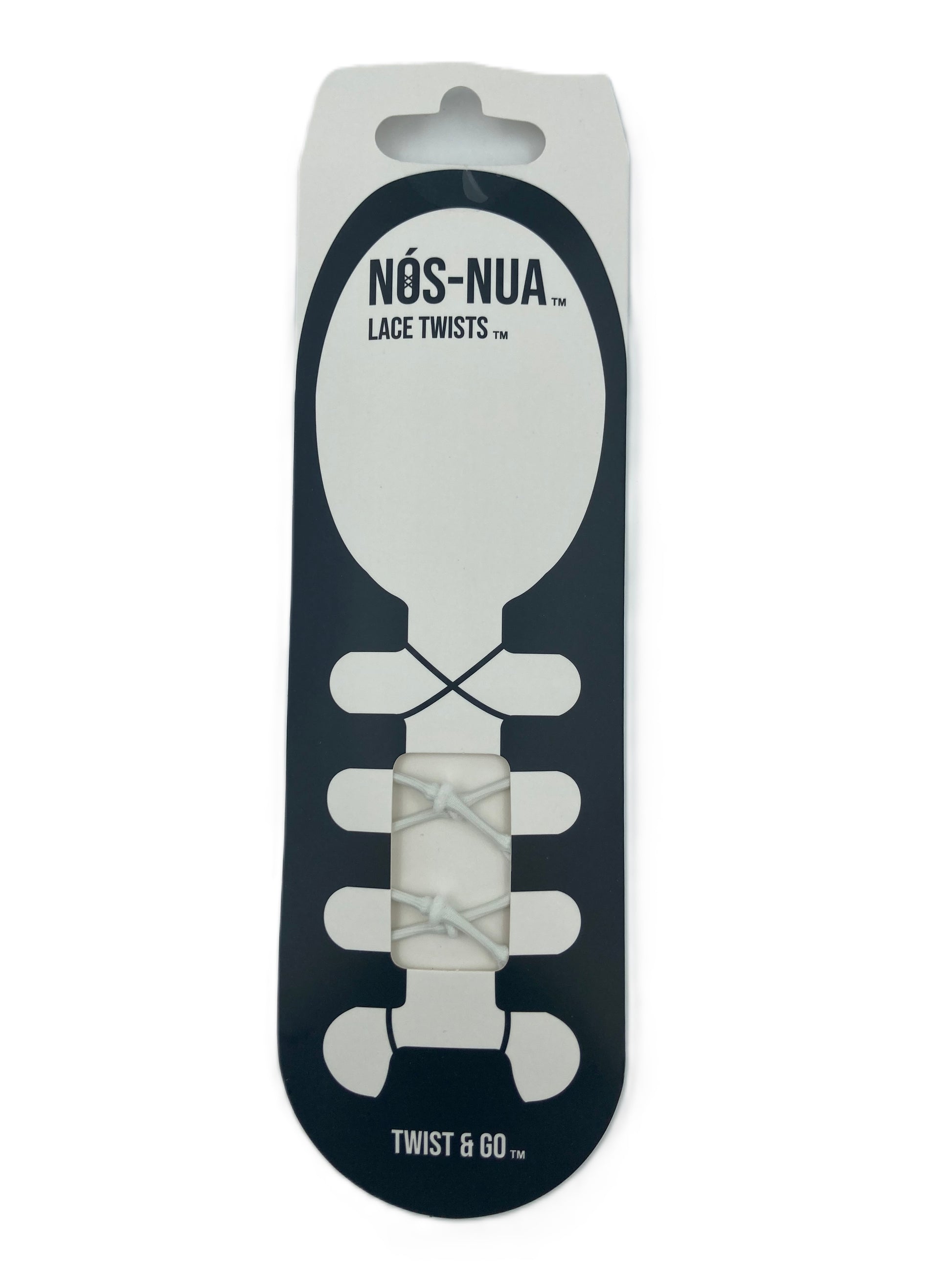 Note: Some shoes have metal circular optional eyelets (holes) which may be small on some brands. If the small end of the Nós-Nua Lace Twist does not fit through these holes do not force it and loop the shoe as normal through the other leather and elasticated loops.